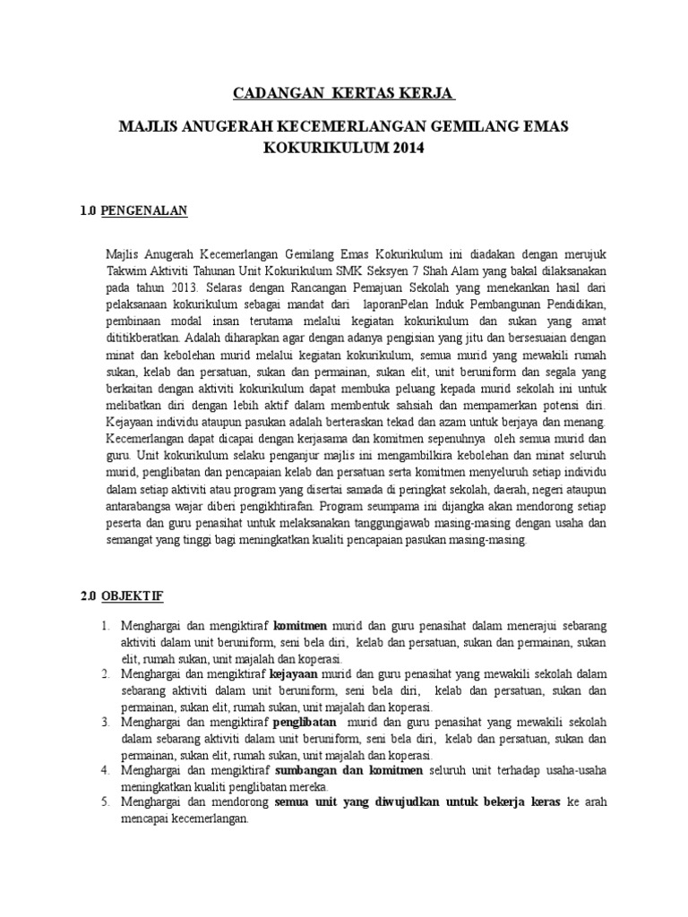 Kertas Kerja Hari Anugerah Kecemerlangan Kokurikulum 2017 Pdf