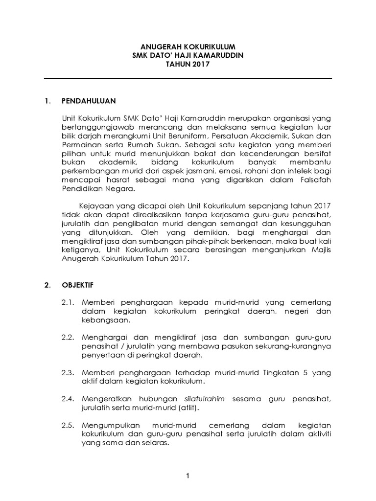 Kertas Kerja Hari Anugerah Kokurikulum Kali 1 Tahun 2016 Pdf